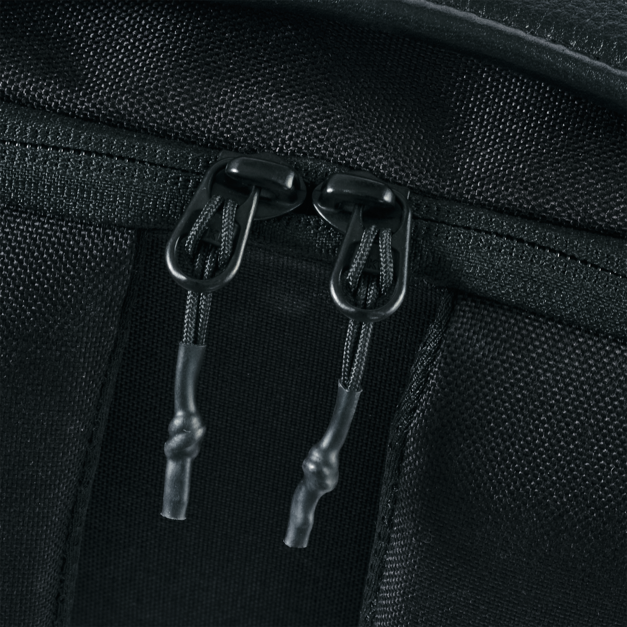 フロントユーティリティポケットは左右どちらからでも同じ空間へアクセス可能としたシンメトリーなファスナー配置。