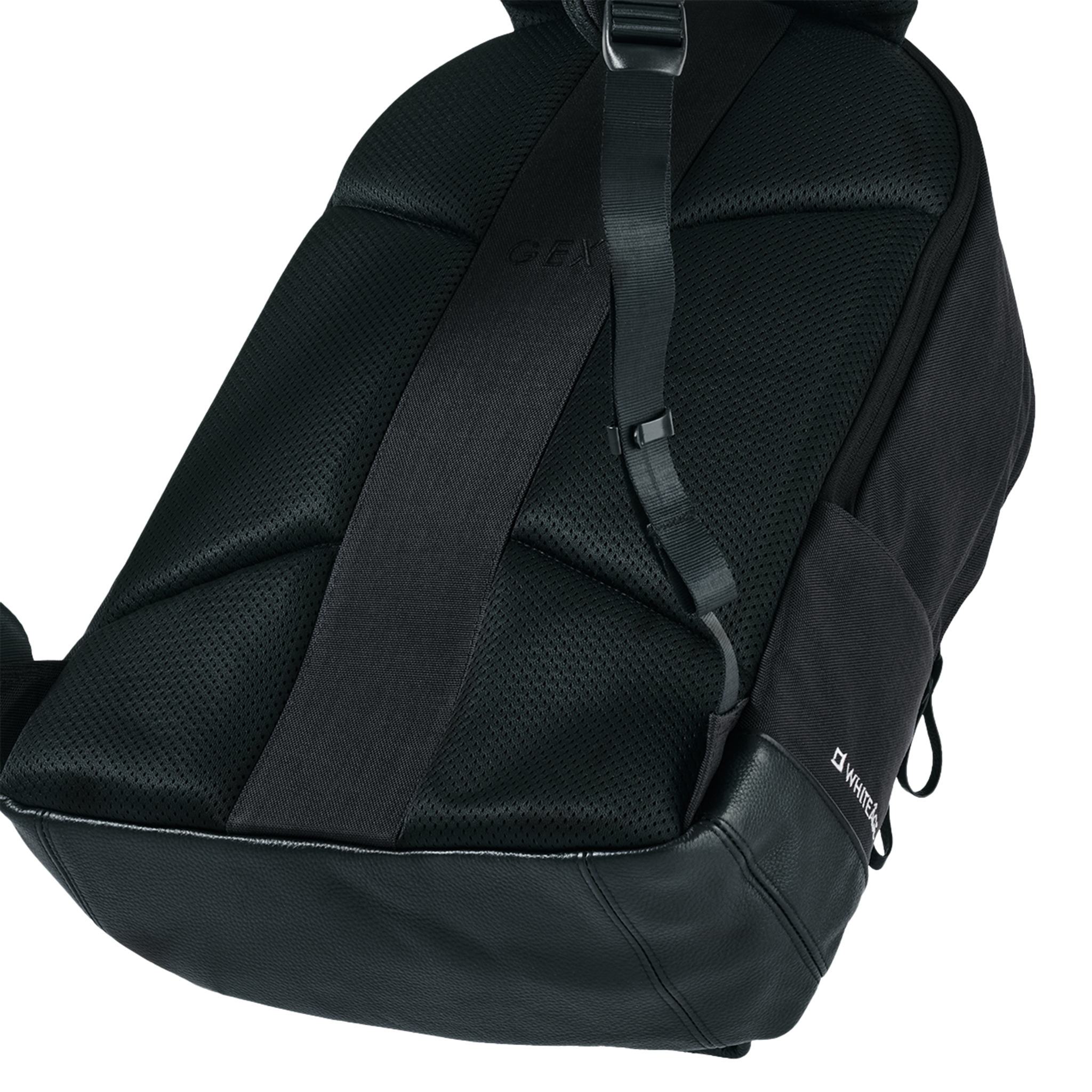 背面の両サイドには体にフィットし、通気性が高い衛生的なメッシュ仕様。底面は丈夫で使うほどに馴染む牛革に切り替え。