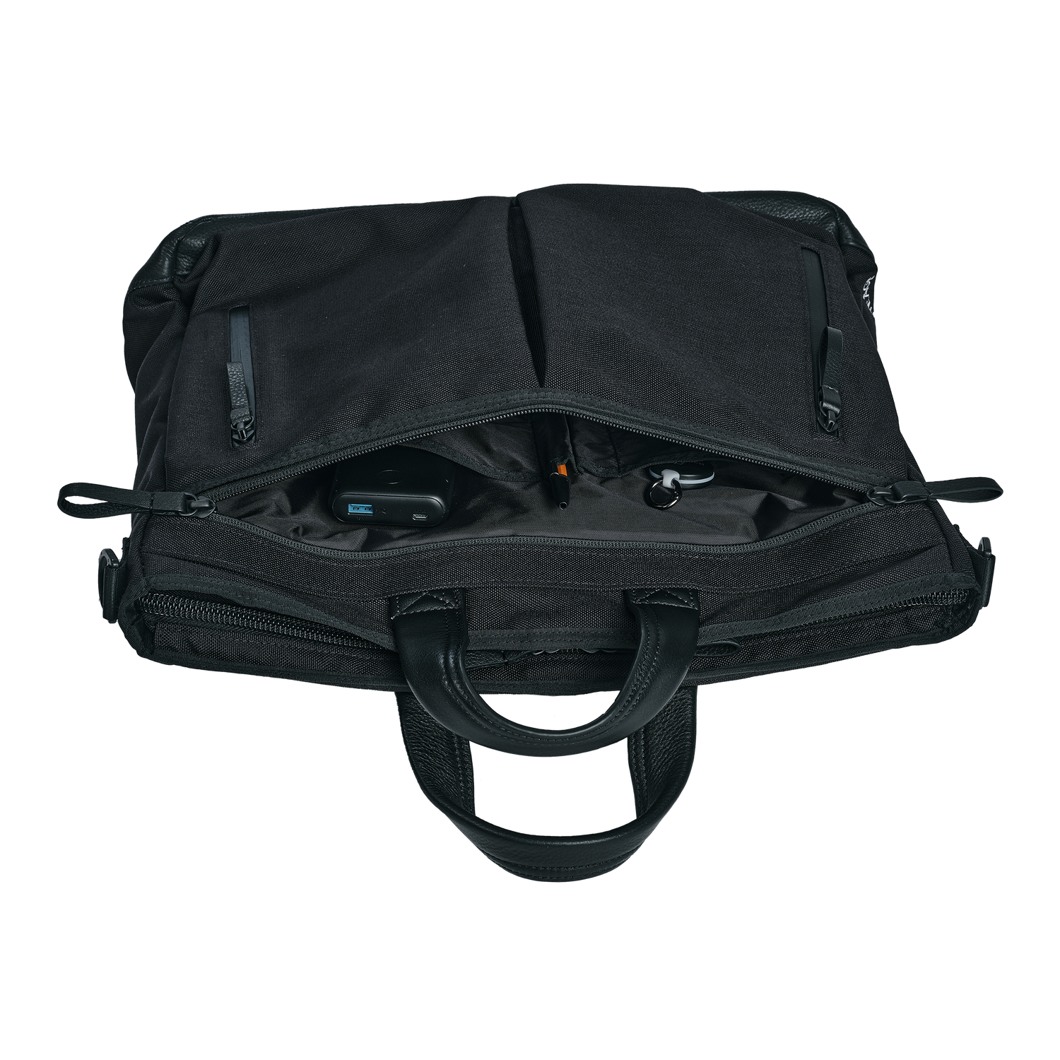 メインルームのフロントサイドには書類など収納可能なポケットとオーガナイザーを配置し、デジタル機器やメモ、小物雑貨を仕分けして収納できる。